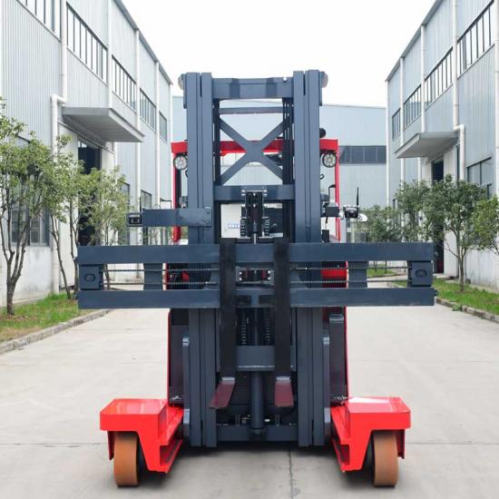 4 方向リーチ トラックは、非常に狭い通路での長い材料の取り扱いに使用されます。リフトの高さは 3 メートルから 8 メートルで、方向転換せずに横に移動できます。鋼管、木材、鉄筋、金属プロファイルなどに最適です。次の機能を備えています。 1.非常に狭い通路での作業 2.長い材料の取り扱い 3.倉庫容量の増強 4.高いコストパフォーマンス